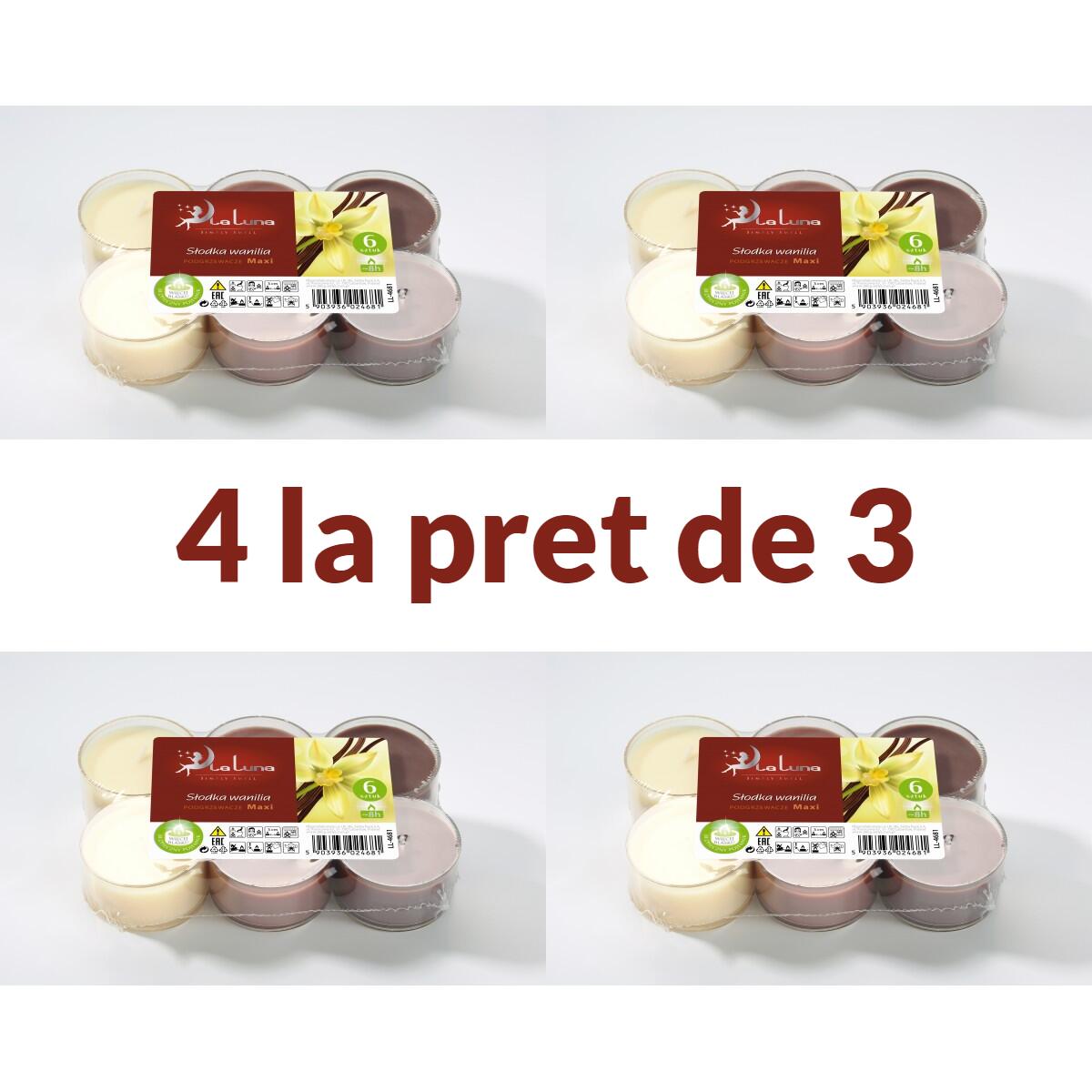 Set 4 x 6 Lumânări Pastilă Vanilie La Luna - Promo 3+1