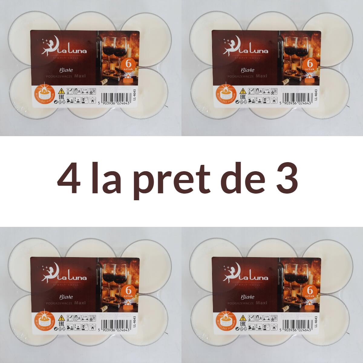 Set 4 x 6 Lumânări Maxi La Luna - Promoție 3+1 Cadou