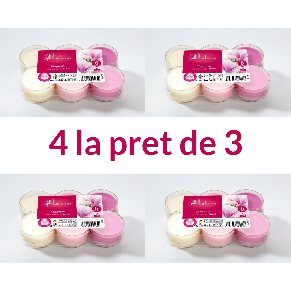 Set 4 x 6 Lumânări Magnolie La Luna - Promo 3+1 Cadou