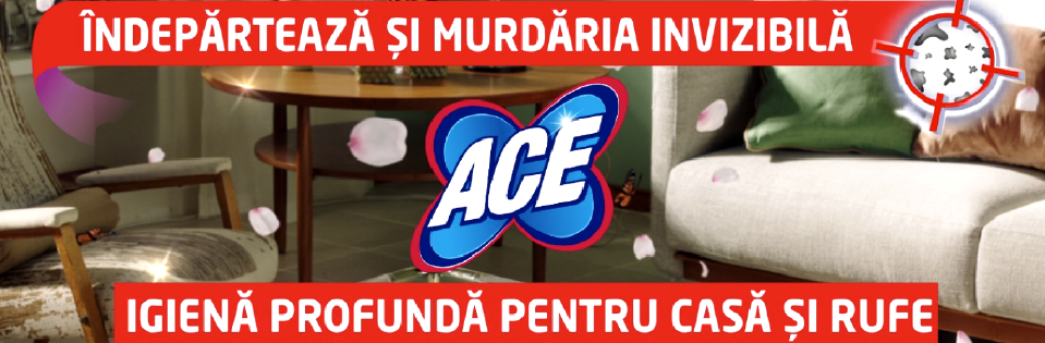 Cu ACE , este ușor să obții cele mai bune rezultate în gospodăria ta! Ofera o igiena profunda, indepartaza murdaria invizibila si protejeaza tesaturile! Foloseste ACE pentru rufele si casa ta!
