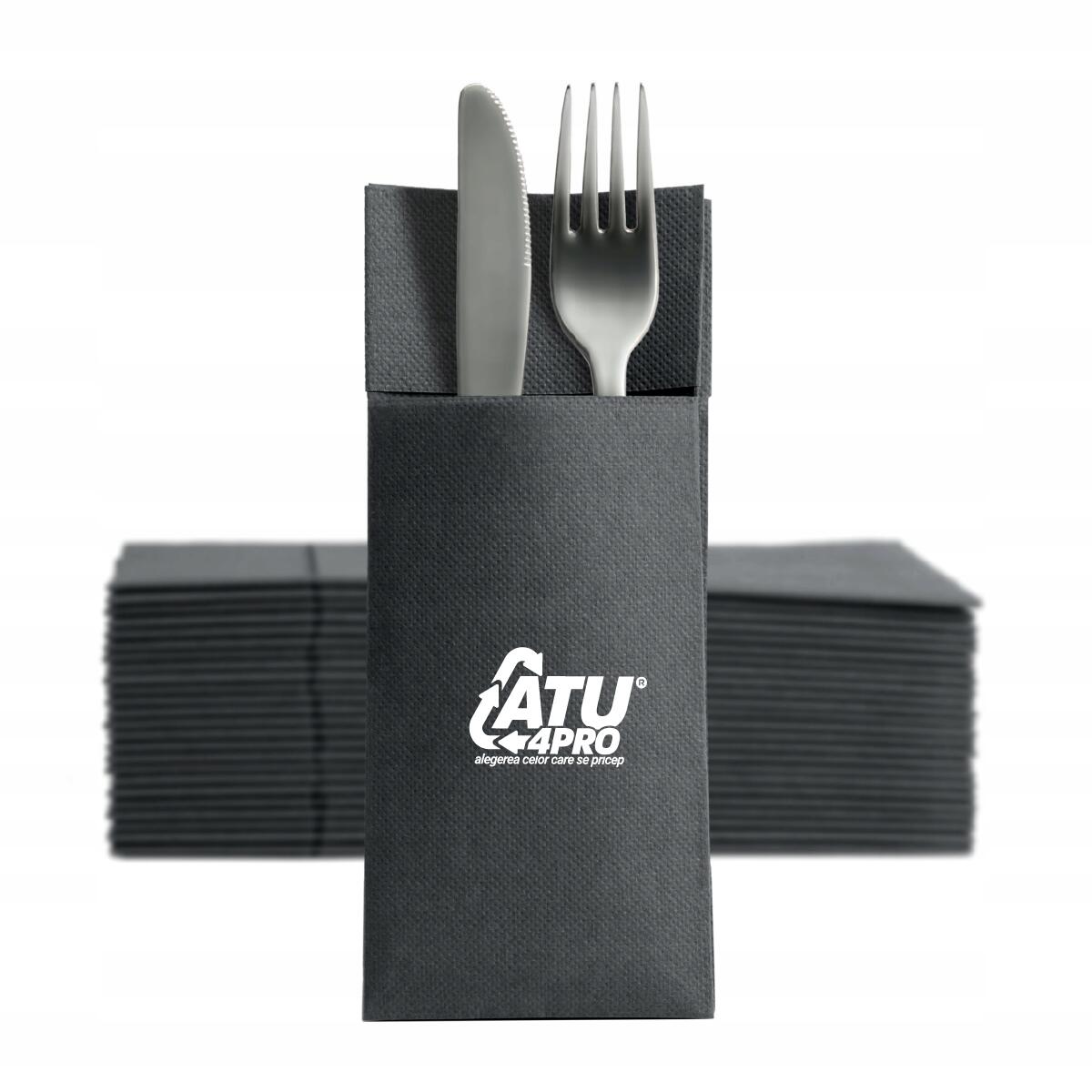 Culoarea neagră aduce un plus de rafinament, potrivită pentru evenimente formale sau restaurante moderne. Designul Kangur este practic, eliminând nevoia de suporturi suplimentare pentru tacâmuri.