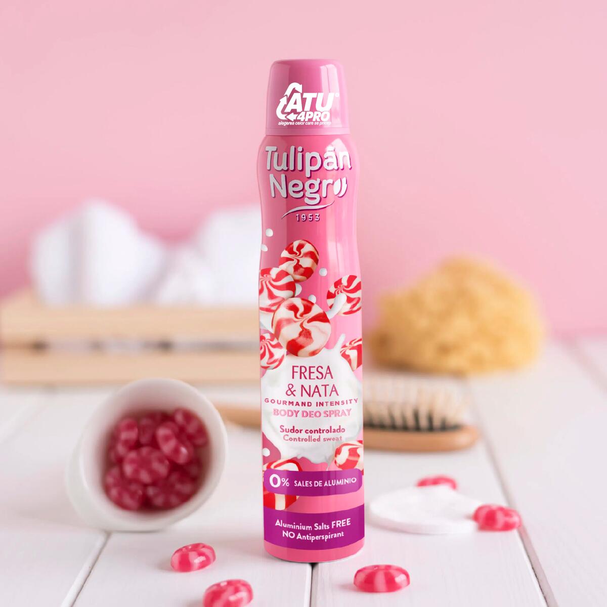 Descoperă aroma delicioasă și dulce a deodorantului spray Tulipan Negro Fresa y Nata. Oferă protecție de durată și o senzație de prospețime irezistibilă.