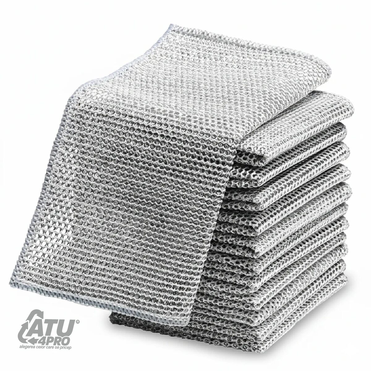 Setul conține 10 bucăți de lavete abrazive cu dimensiuni optime de 20x20 cm, ideale pentru manipulare ușoară în spații înguste. Materialul durabil este proiectat să curețe grăsimea arsă și depunerile de calcar fără a se destrăma rapid. Datorită structurii poroase, laveta reține eficient soluțiile de curățare, generând o spumă densă pentru un consum redus de detergent. Suprafața abrazivă este dură cu petele, însă adaptată pentru a fi utilizată pe diverse suprafețe rezistente, precum inoxul sau ceramica. Dimensiunea pătrată permite o pliere ergonomică, protejându-ți mâinile în timpul frecării intense. Aceste lavete sunt reutilizabile și pot fi clătite ușor după fiecare sesiune de igienizare a locuinței. Culoarea vibrantă ajută la identificarea rapidă în setul tău de ustensile pentru curățenie. Designul compact face ca depozitarea lor să ocupe un spațiu minim în dulapul cu accesorii menajere. Alegerea acestui pachet economic îți asigură stocul necesar pentru o perioadă îndelungată, reducând costurile per utilizare. Este soluția perfectă pentru menajul zilnic, garantând rezultate profesionale cu efort minim.