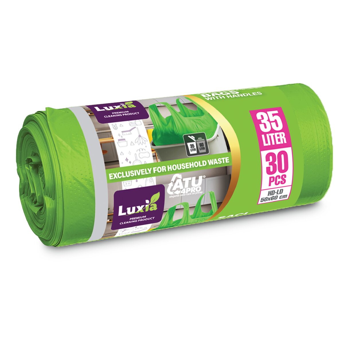 Saci menajeri Luxia cu capacitate de 35 litri sunt realizați din polietilenă de înaltă calitate, având o grosime de 9 microni pentru o rezistență sporită.