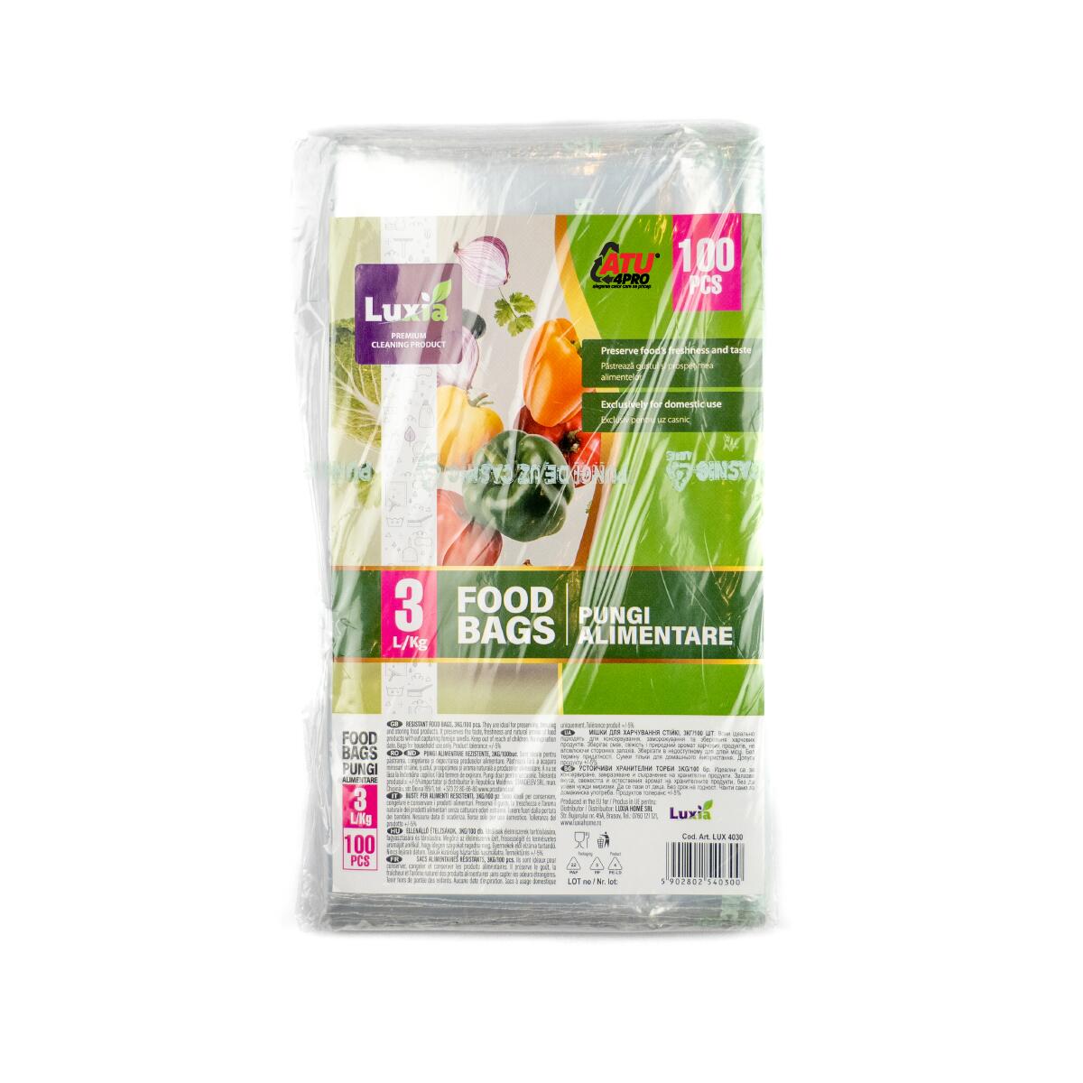Pungi Alimentare Luxia 3L/3kg Congelator 26x38 cm LDPE 23 Microni – Depozitare Sigură și Proaspătă