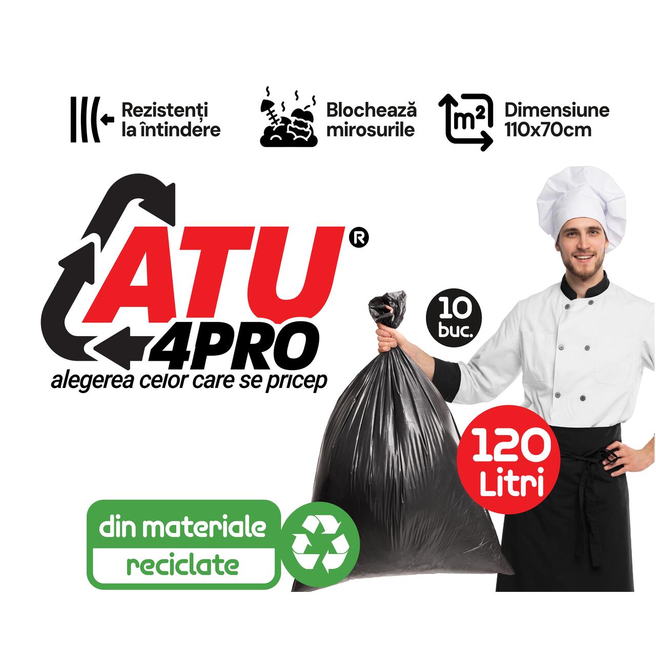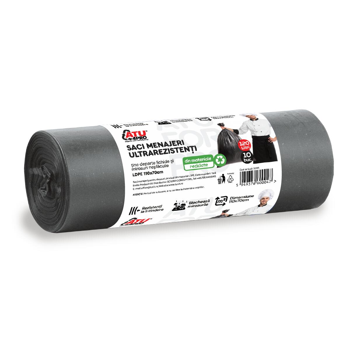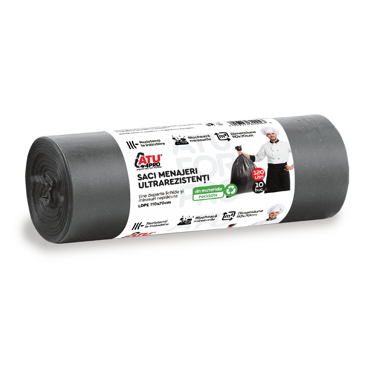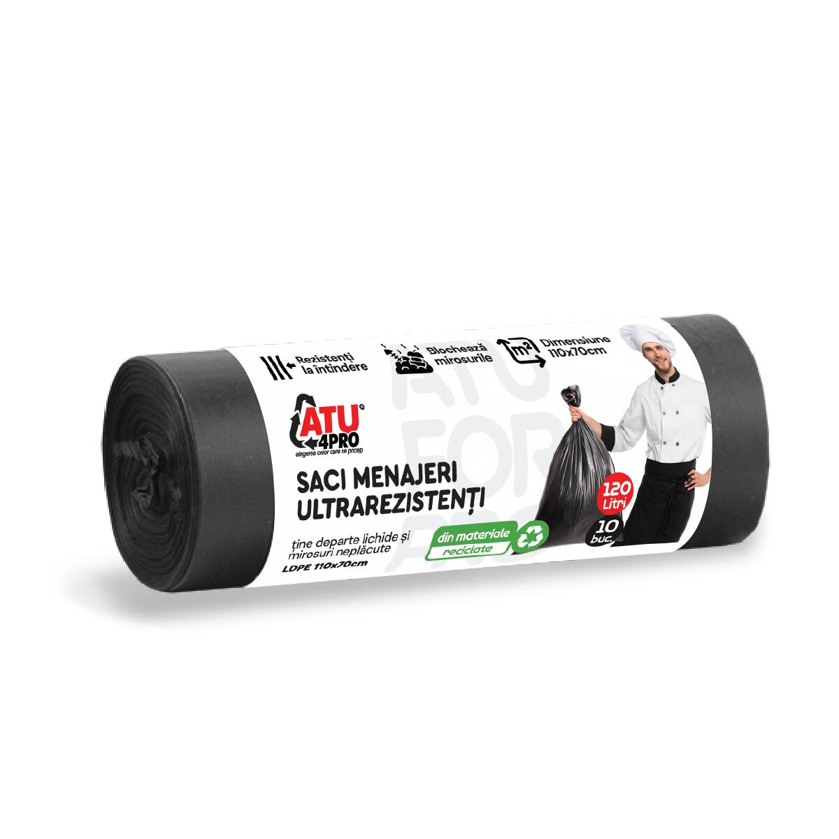 Gama Atu 4 Pro este destinata consumurilor colective, hotelurilor, restaurantelor, spatiile publice si tuturor profesionistilor care se pricep. Saci menajeri ultrarezistenti 110x70 cm, 10 bucati pe rola.