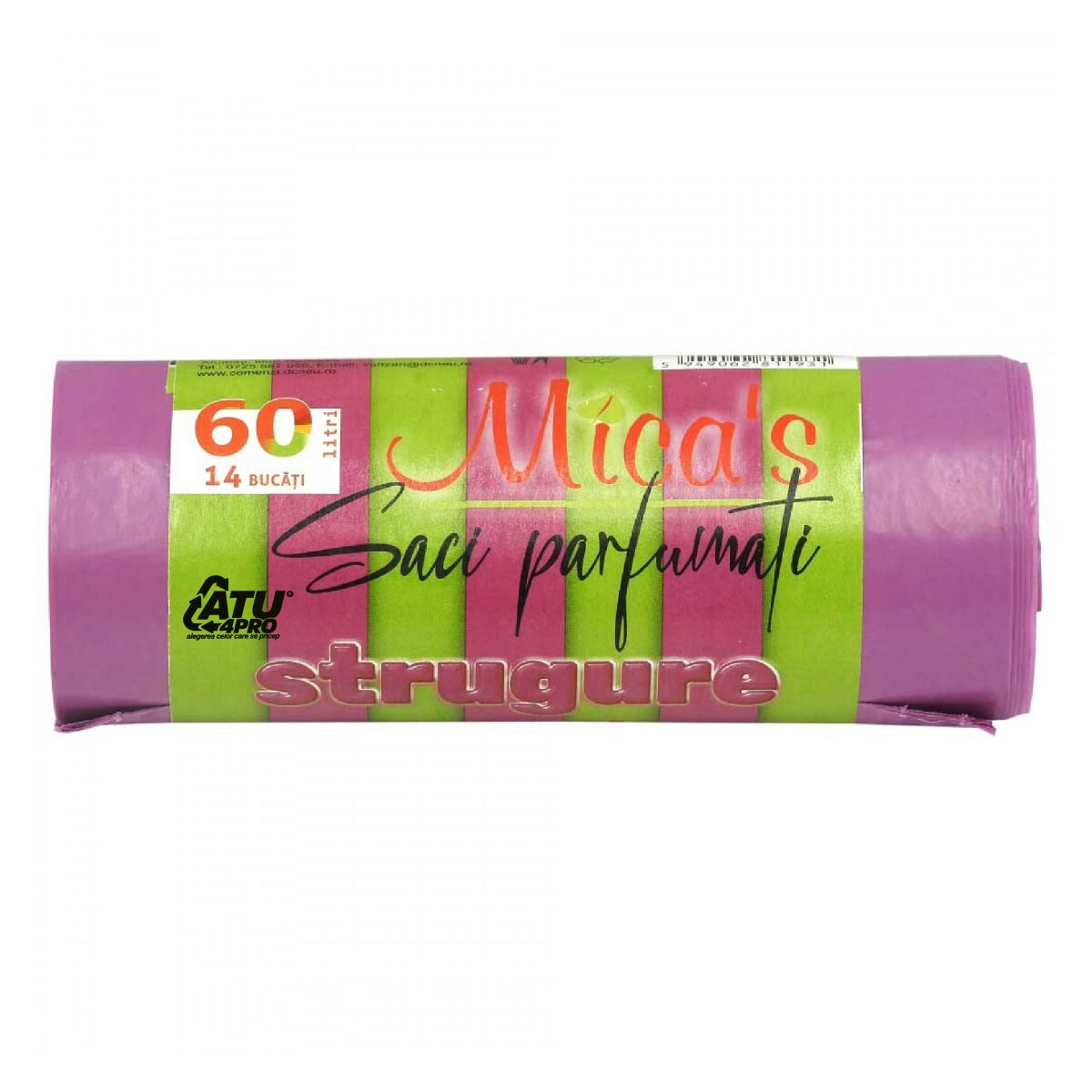 Saci menajeri Micas cu urechi și parfum de strugure, ideali pentru uz zilnic. Oferă rezistență ridicată și prospețime în gestionarea deșeurilor.