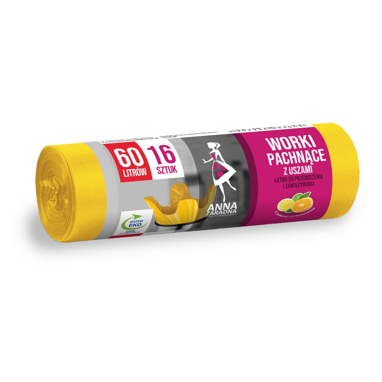 Saci menajeri parfumati, 60 Litri, 16 bucati, HDLD, galben citrice, cu urechi, multitop, Ana