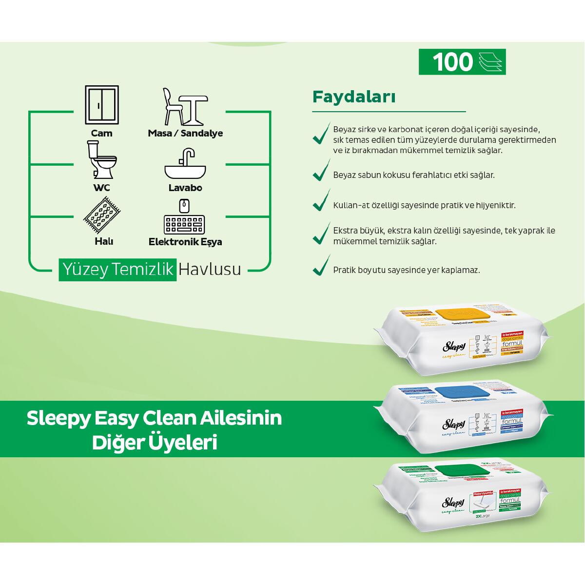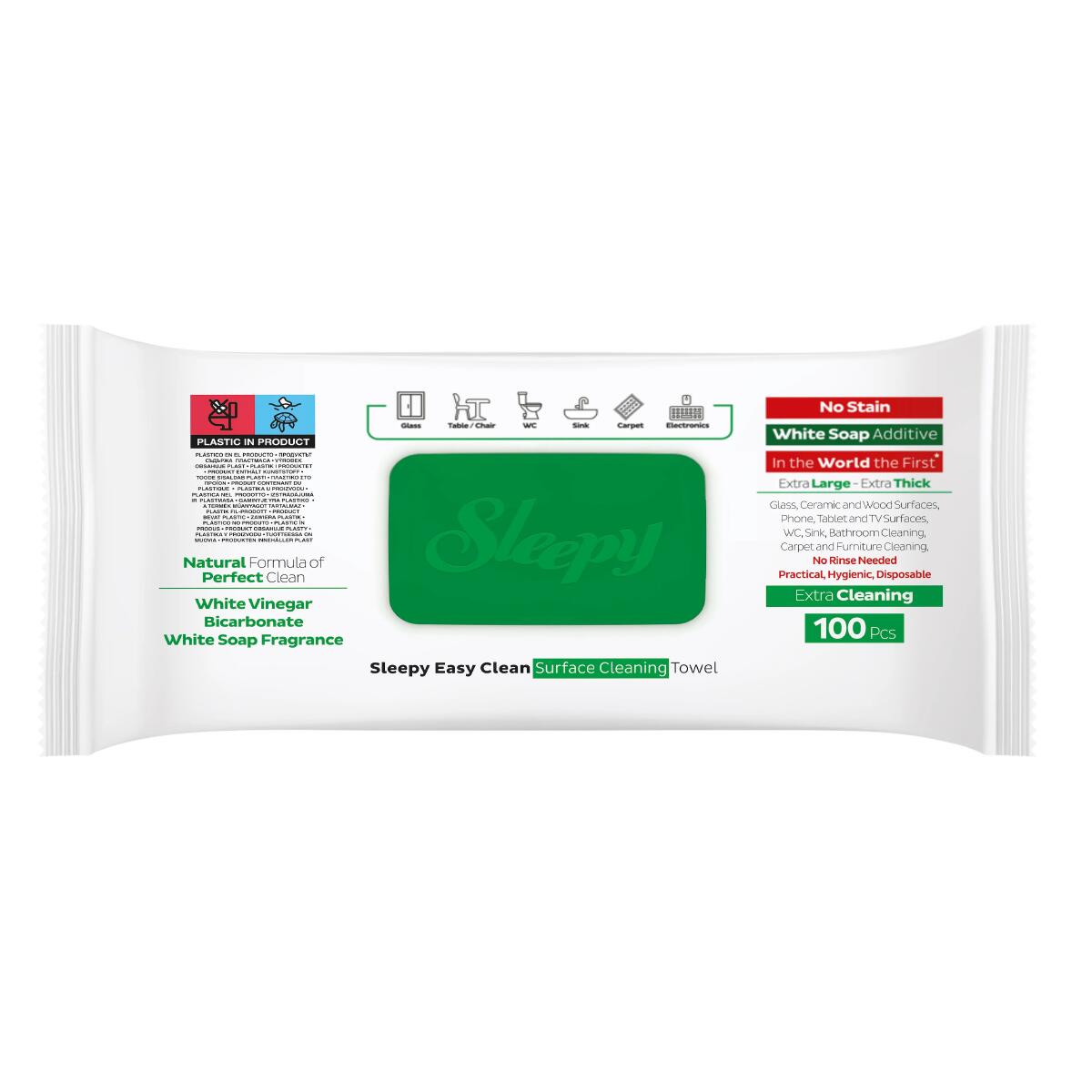 Servetelele Umede Sleepy Easy Clean White Soap Additive Multisuprafețe, un partener ideal pentru curățarea eficientă și rapidă a tuturor suprafețelor din jurul casei tale. Cu o formulă naturală ce conține o combinație de otet alb și bicarbonat de sodiu, aceste servetele oferă o curățare perfectă fără a lăsa urme și fără a necesita clătire ulterioară. Curata suprafete din sticla, lemn, aragaz, telefon, tableta, tv, toaleta, chiuveta, baie, curatare covoare, canapea sau mobila, etc.
