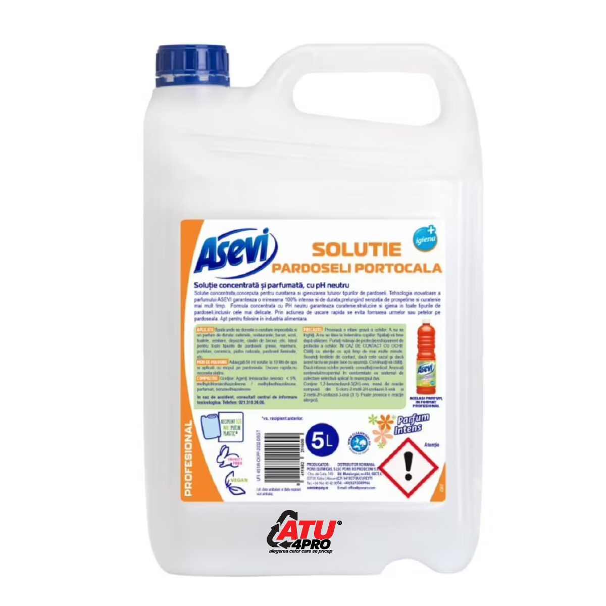 Soluția pentru pardoseli Asevi Portocală Profesional este alegerea perfectă pentru o curățenie impecabilă, prospețime plăcută și protecție de lungă durată!